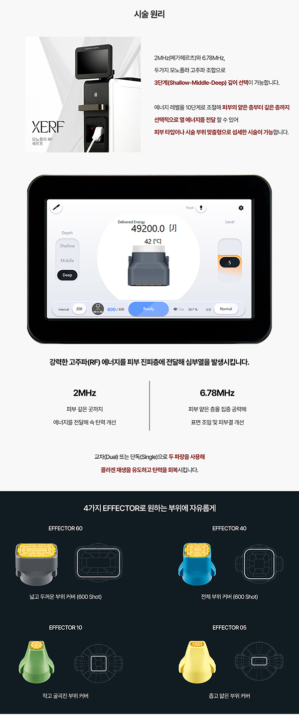 ¼¼¸£ÇÁ(XERF)´Â µà¾ó ¸ð³ëÆú¶ó °íÁÖÆÄ(RF) ±â¼úÀ» Ȱ¿ëÇÑ ºñÀý°³ ÇÁ¸®¹Ì¾ö ¸®ÇÁÆÃ ½Ã¼ú·Î, ÇǺΠź·Â ÀúÇÏÀÇ ±Ùº» ¿øÀÎÀÎ ÁøÇÇÃþ ¹× ÇÇÇÏÁö¹æÃþ±îÁö °íÁÖÆÄ ¿¡³ÊÁö¸¦ Á¤¹ÐÇÏ°Ô Àü´ÞÇØ Äݶó°Õ Àç»ý°ú ÇǺΠÁ¶Á÷¼öÃàÀ» À¯µµÇÕ´Ï´Ù.